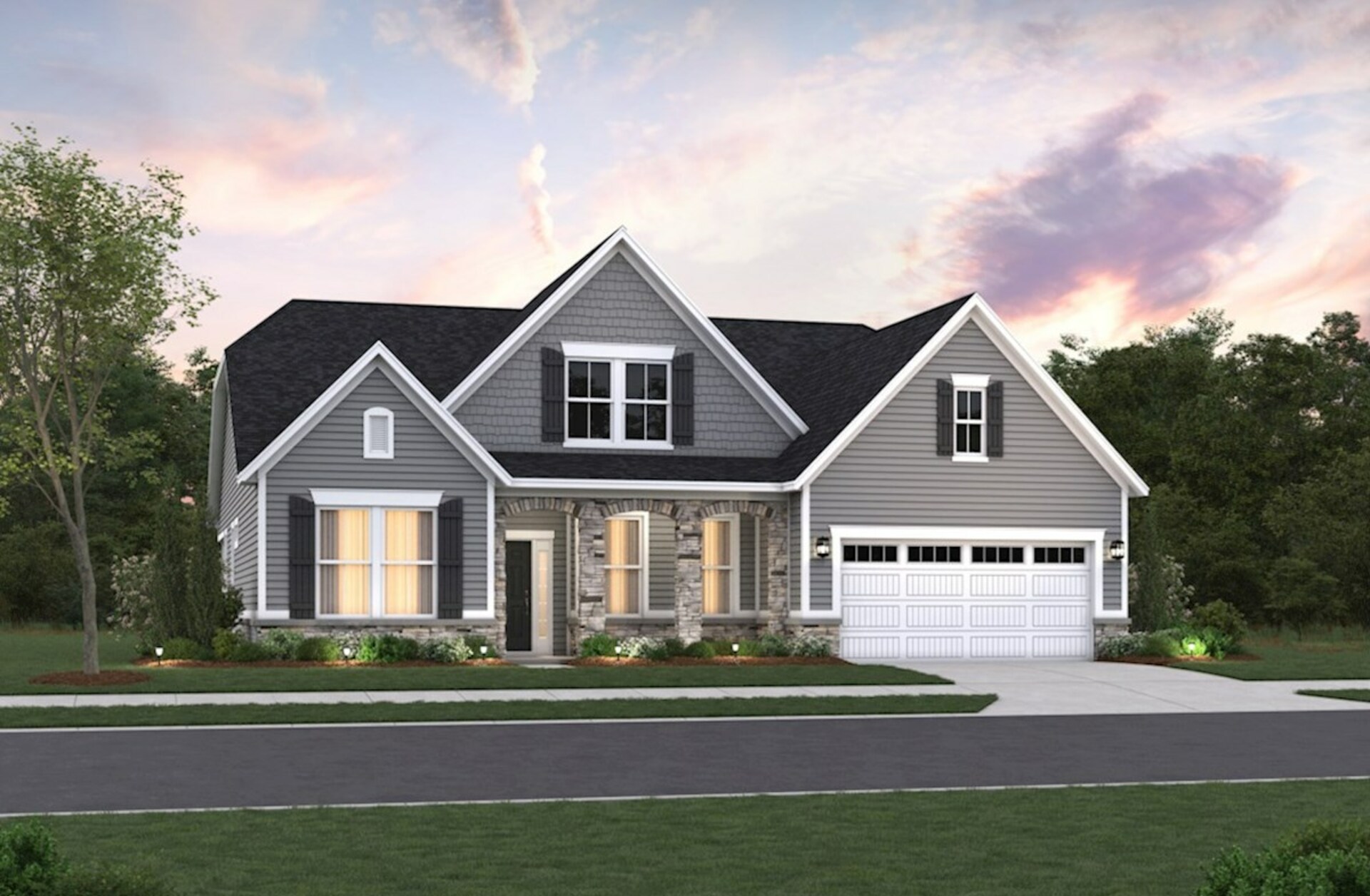 The Charleston plan is a stylish single-story ranch featuring an open-concept kitchen and great room, perfect for everyday living and entertaining. An optional second-floor loft creates a dramatic two-story great room, while the first-floor bedroom and 3-car tandem garage add comfort and convenience.